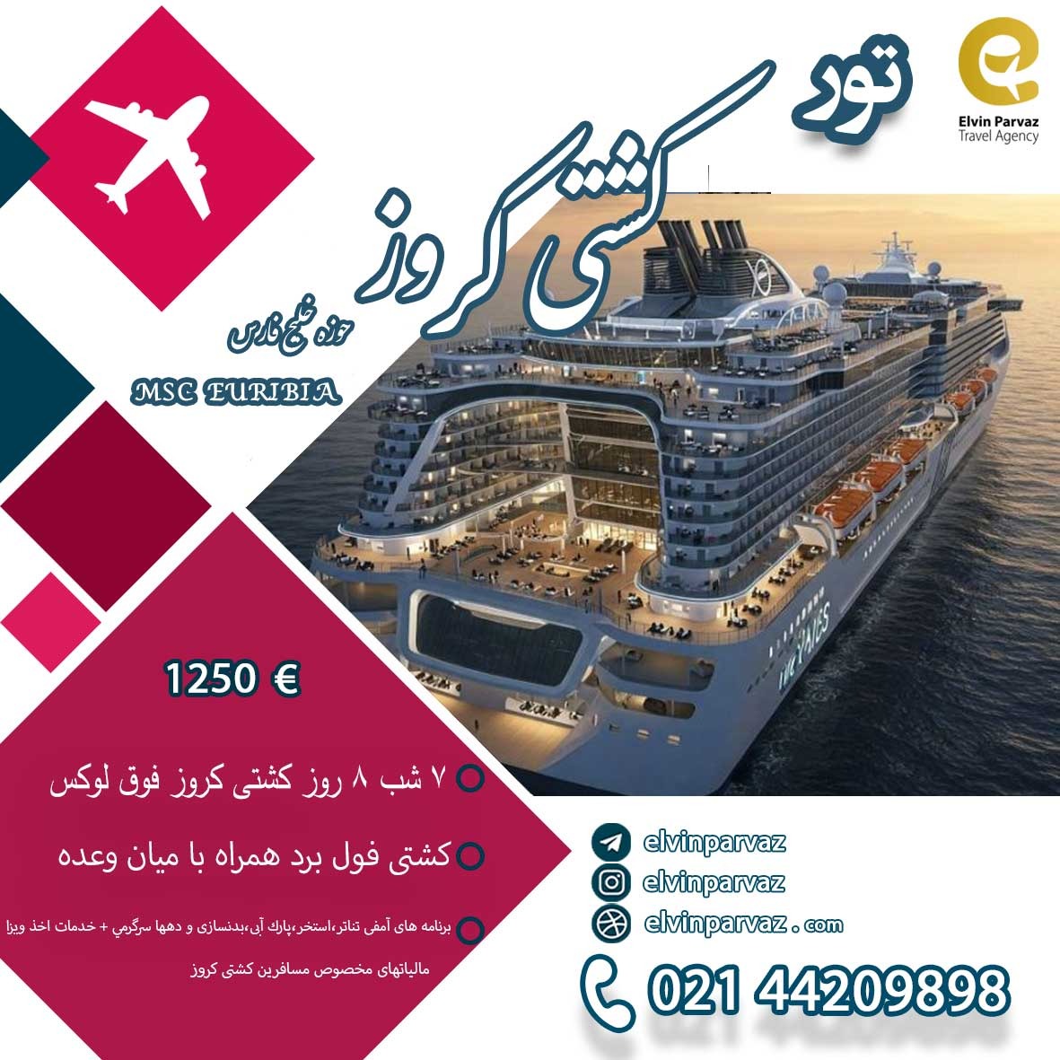 یکی از مسیرها برای ۷ شب و ۸ روز در خلیج فارس است که با MSC Euribia اجرا میشود